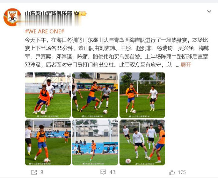 虽然是热身比赛,但是双方都是真刀真枪在干,山东泰山派出由刘骐玮、王彤、赵剑非、杨瑞琦、吴兴涵、梅帅军、尹嘉熙、邓淳泽、路俊伟和买乌郎首发,大家看到这套阵容,是否有很陌生球员的名字,没有错,很多只是替补,就这套阵容,能胜弱旅青岛西海岸吗?