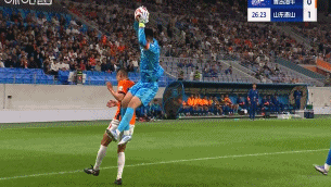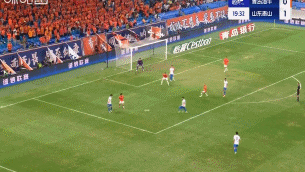 第90+1分钟,刘洋主罚任意球射门被韩镕泽化解。↓