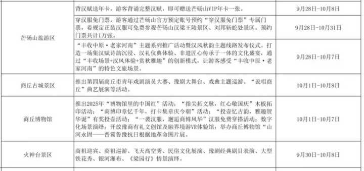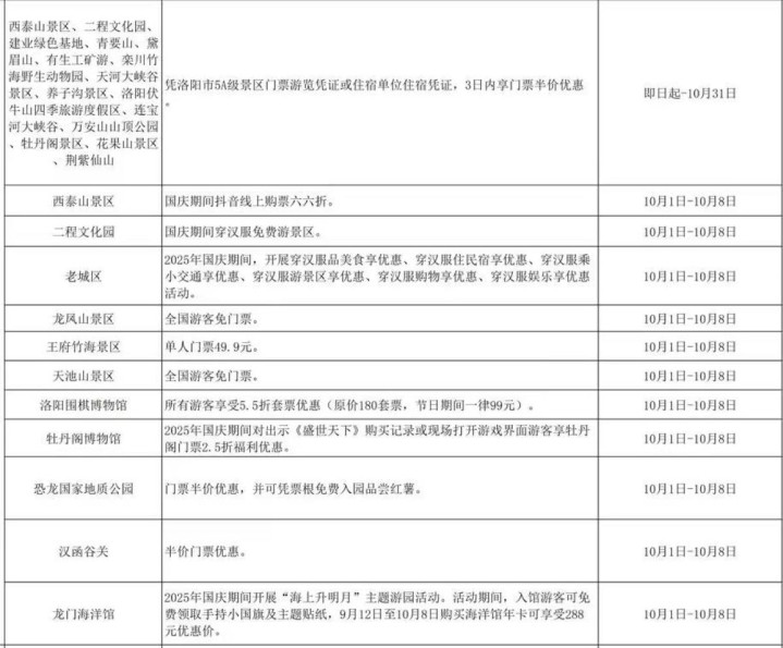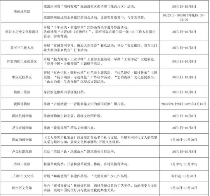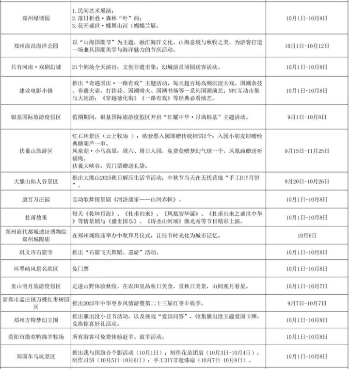 十一去哪玩?河南文旅放大招了!近日,大河报·豫视频记者从河南省文化和旅游厅官微了解到,即将到来的国庆假期,河南18地市景区及文化场馆推出免票、半价等优惠政策,还有超多非遗演艺活动,攻略都给你们整理好啦,速速收藏!