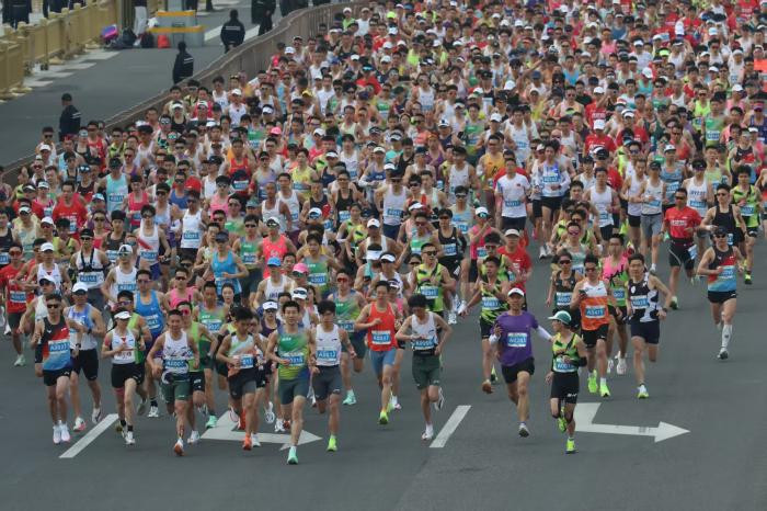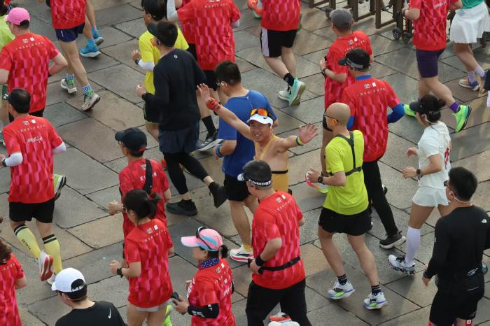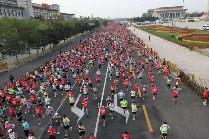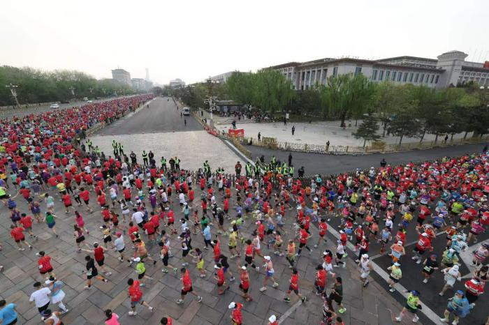2.2万名跑者齐聚京城,沿着北京中轴线开启奔跑征程。