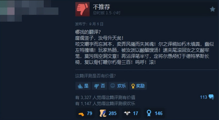 但不少玩家并不买账,表示如果后续不推翻重译,很可能继续刷差评。