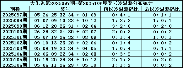 周横体彩大乐透第2025107期定位奖号遗漏值分析(定义:遗漏0-3期为热码,遗漏4-9期为温码,遗漏10期及以上为冷码)