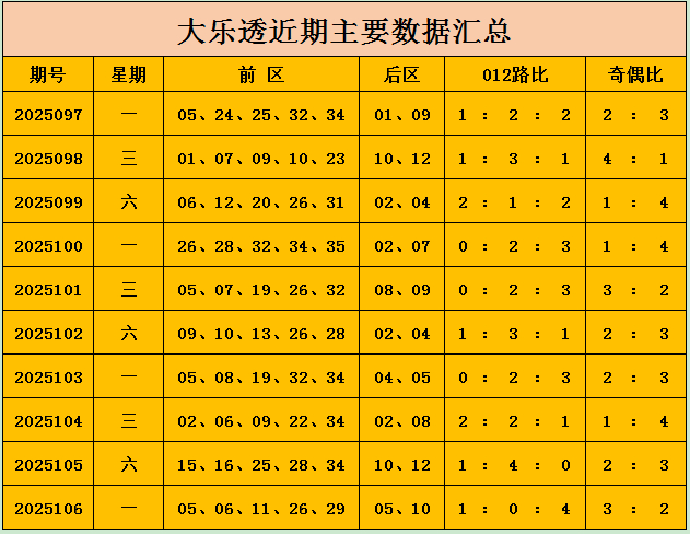 前区奇偶分析:上期前区开出奇数3个,偶数2个,奇偶比3:2,近10期奇偶比21:29,整体看偶数球出现次数多,但本期预计偶数球热出,推荐奇偶比2:3。